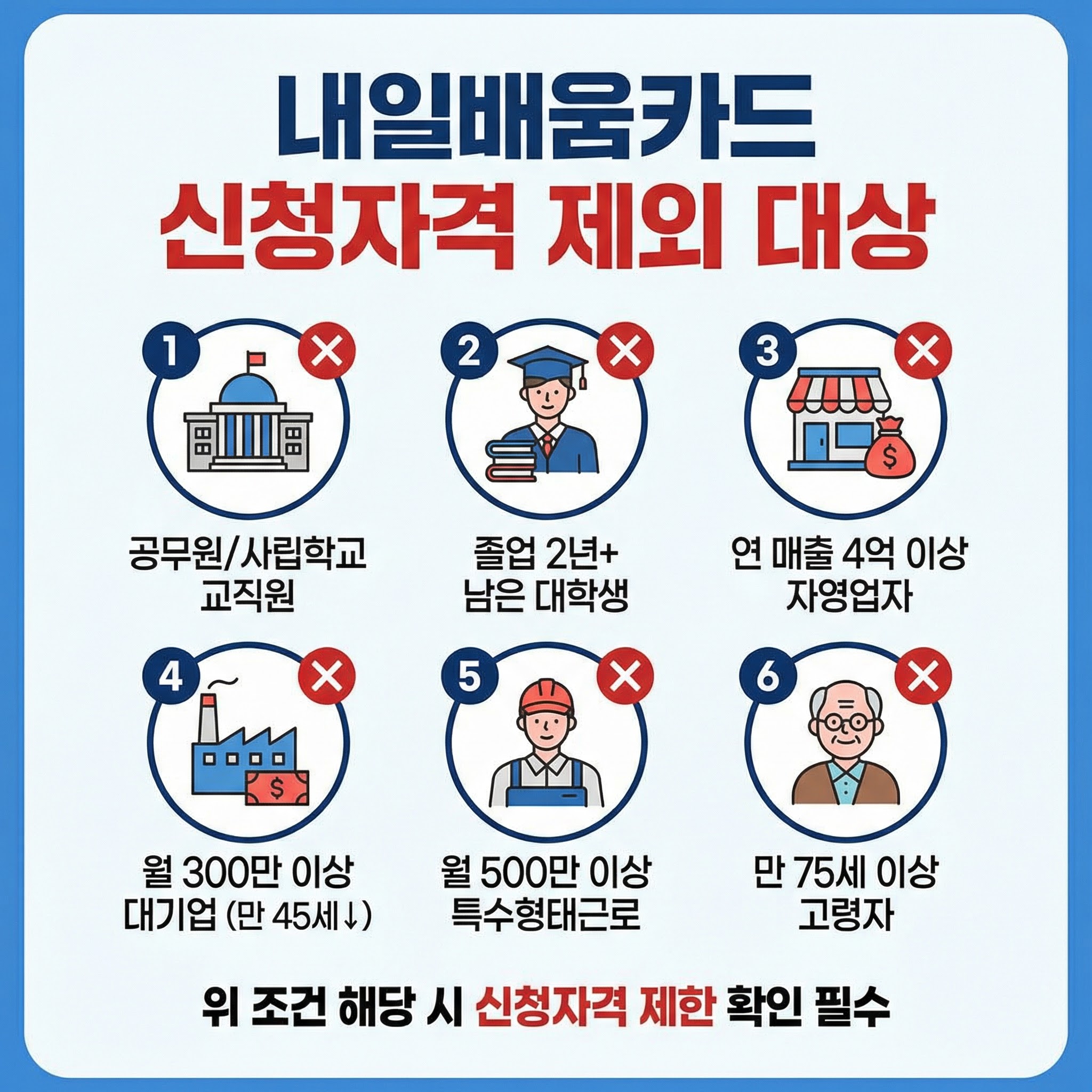 위 조건에 해당하면 내일배움카드 신청자격이 제한될 수 있으니 꼭 확인하세요.