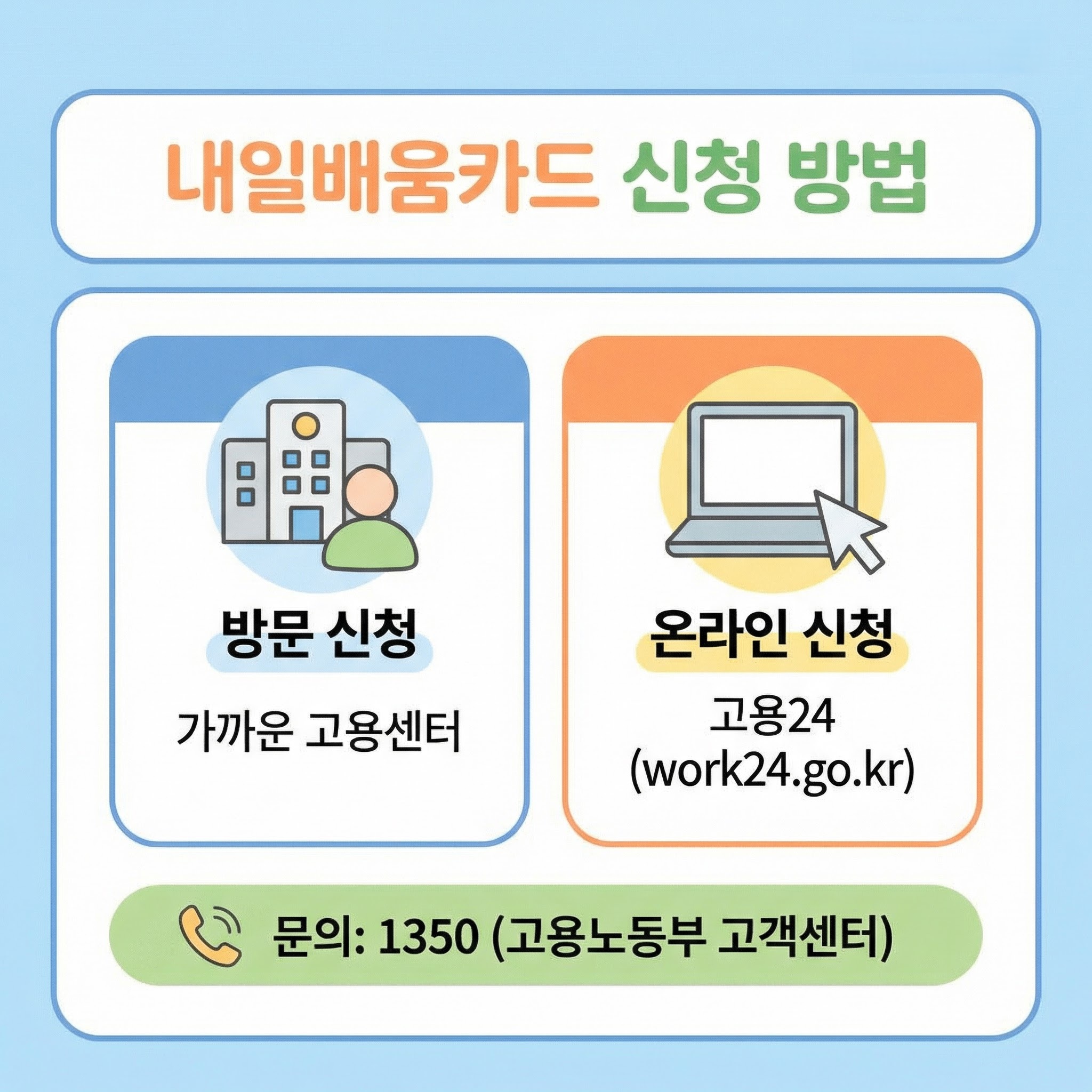전화 상담은 고용노동부 고객센터 ☎1350으로 문의하면 돼요.