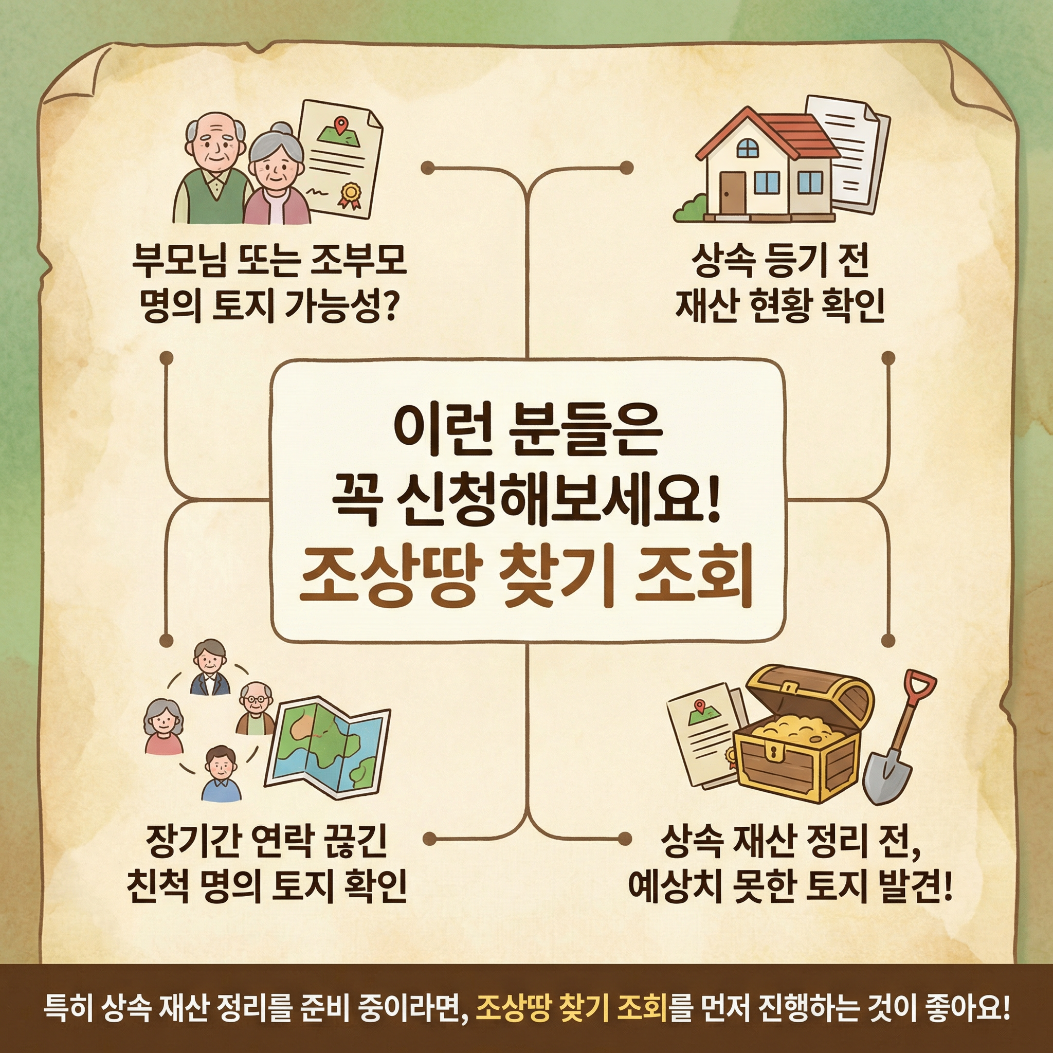 상속, 재산 확인, 토지 보유 현황 점검까지 한 번에 가능한 조상땅 찾기 조회, 지금 바로 신청해보시는 걸 추천드려요!