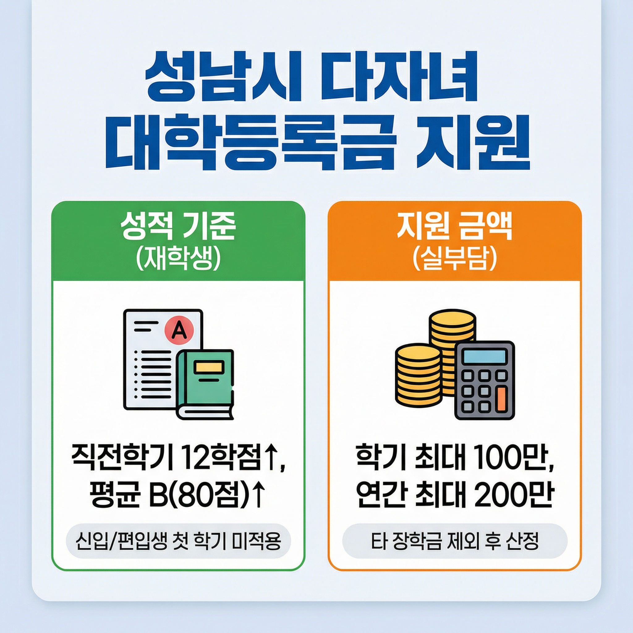 성남시 다자녀 대학등록금 지원 신청 대상, 지원금액, 신청방법까지 정리해 드릴게요. 실제 신청을 고려하는 분들이 바로 활용할 수 있도록 자세히 안내해 드리니 끝까지 확인해 보세요.