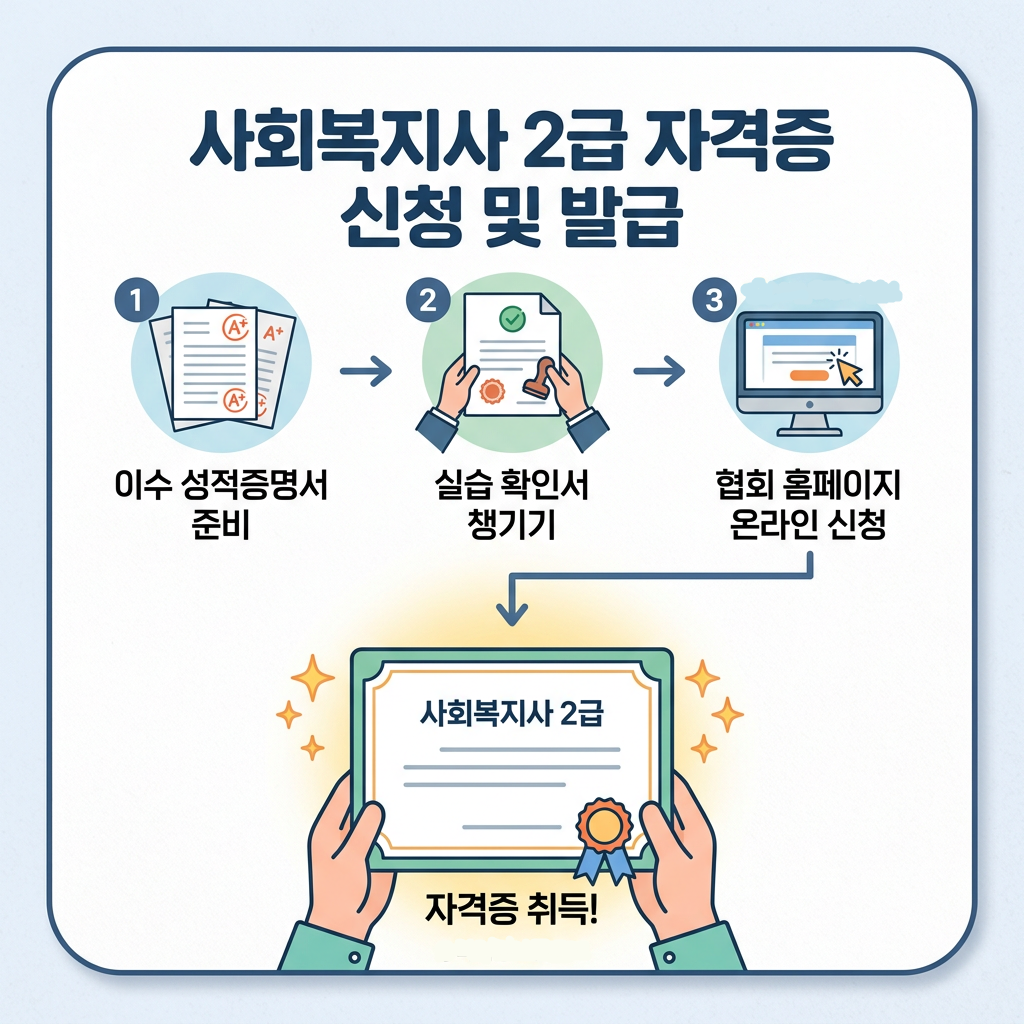 - 전문대 졸업 이상 학력: 전문학사 이상의 학위가 있어야 사회복지사 2급 자격증 취득방법 절차를 마무리할 수 있어요.