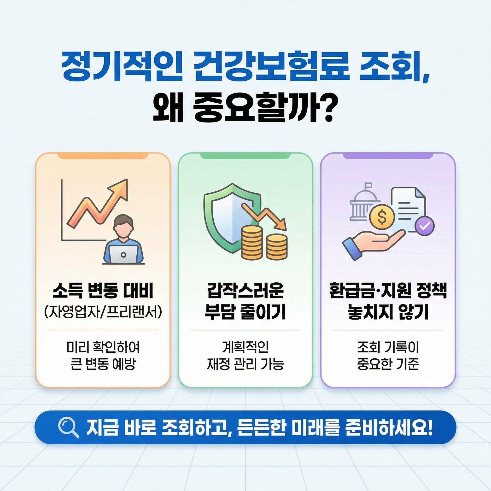 이럴 때 건강보험료 조회를 통해 미리 확인하면 갑작스러운 보험료 부담을 줄일 수 있습니다.