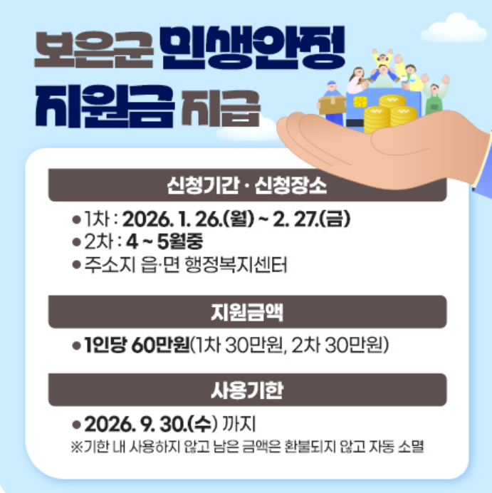 2026년 1월, 보은군 민생지원금이 전 군민에게 지급됩니다.