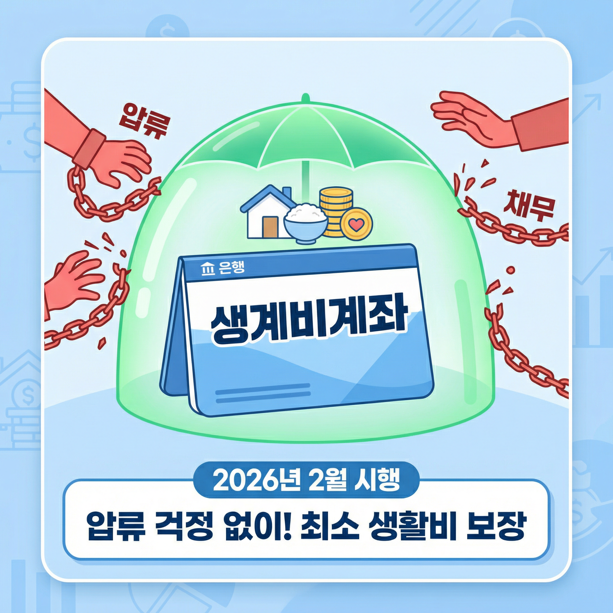 2026년 2월부터 시행되는 ‘생계비계좌’ 제도를 알고 계신가요? 생계비계좌는 채무자가 최소한의 생활을 유지할 수 있도록 매월 일정 금액을 압류 없이 사용할 수 있도록 도와주는 제도입니다. 오늘은 이 생계비계좌가 왜 중요한지, 어떻게 활용할 수 있는지 쉽게 설명해드릴게요.