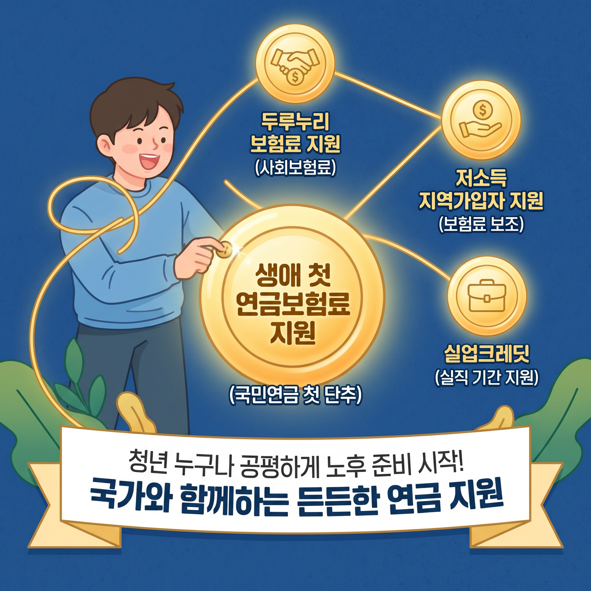 생애 첫 연금보험료 지원으로 가입자가 된 후에는 두루누리 보험료 지원, 저소득 지역가입자 지원, 실업크레딧 등 국가에서 제공하는 다양한 연금 지원 제도의 혜택을 더 받을 수 있어요. 생애 첫 연금보험료 지원은 그야말로 국민연금의 첫 단추를 국가와 함께 끼워 청년 누구나 공평하게 노후를 준비하는 시작점입니다.