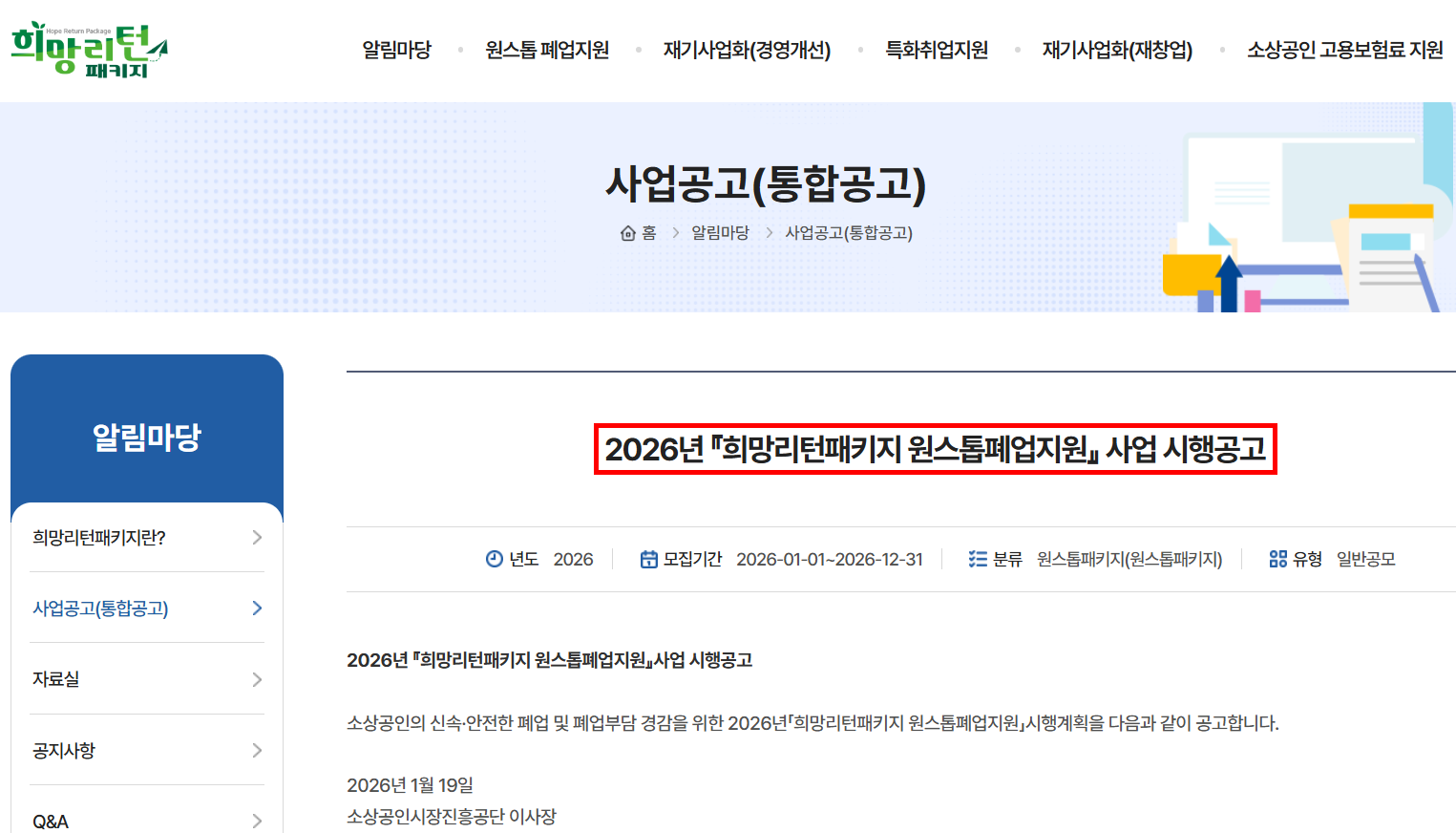 2026년에도 어김없이 돌아온 소상공인 희망리턴패키지!