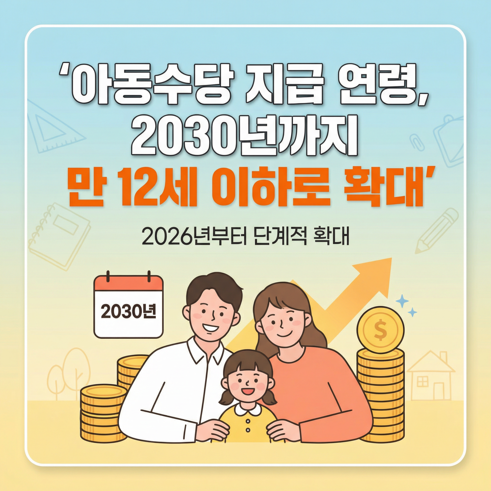 2026년부터 아동수당 지급 연령이 단계적으로 확대되고, 일부 지역에서는 추가 지원금도 받을 수 있게 됐다는 반가운 소식이에요. 아이를 키우는 부모라면 꼭 알아야 할 아동수당 개정안 내용을 자세히 정리해드릴게요.