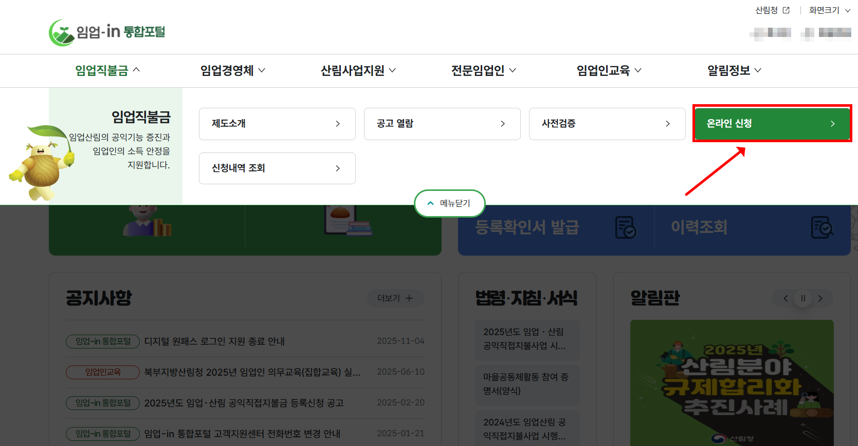 - 신청방법: 임업-in 통합포털(인터넷, 스마트폰)