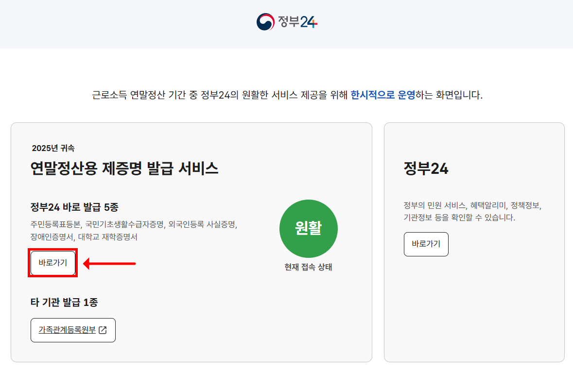 ※ 참고: 연말정산 기간에는 접속 폭주에 대비해 순번 대기 기능도 제공됩니다.
