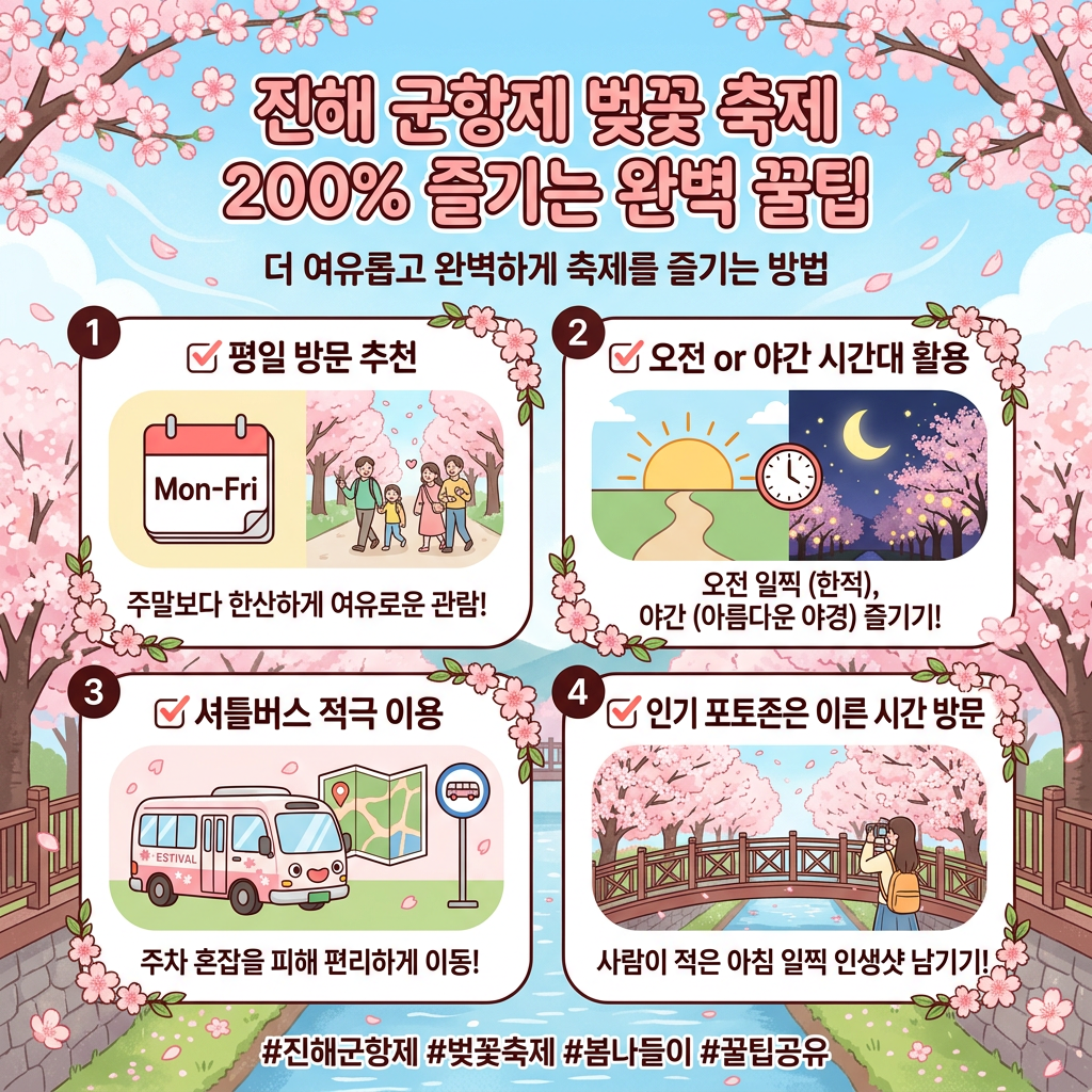 이렇게 준비하면 진해 군항제 벚꽃 축제를 훨씬 여유롭게 즐길 수 있어요.