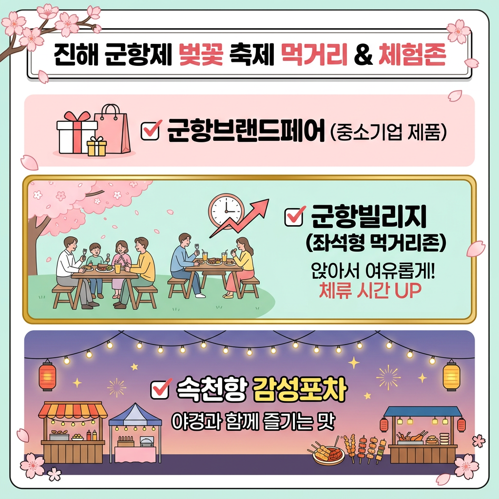 이번 진해 군항제 벚꽃 축제는 먹거리와 체험 공간도 크게 강화됐어요.