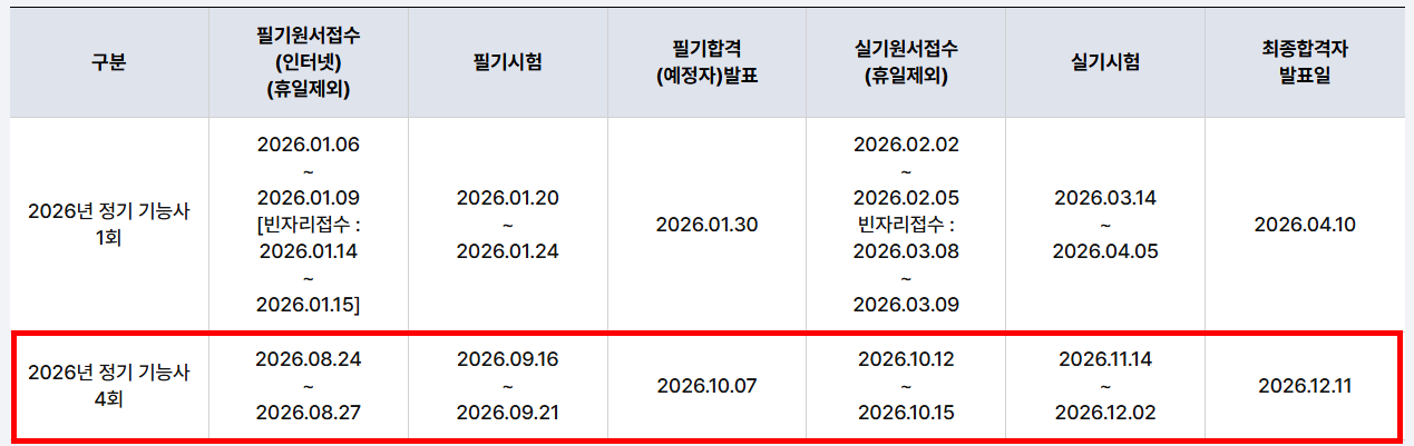 - 접수처: 큐넷 홈페이지 (시험 접수 당일 마감이 매우 빠르니 주의하세요.)