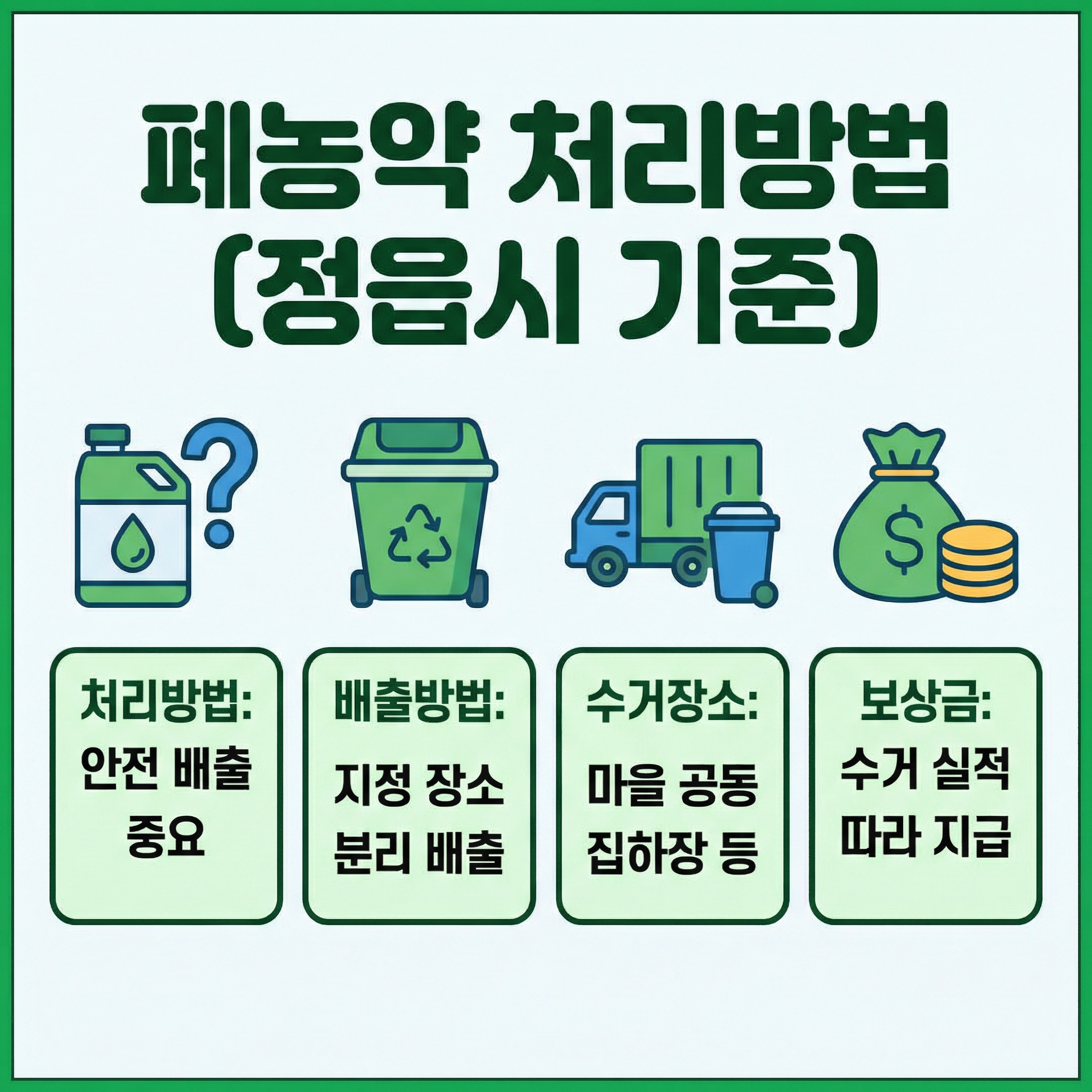 정읍시에서는 농업 환경 보호와 안전한 폐기물 처리를 위해 폐농약 처리방법과 영농폐기물 수거 기준을 운영하고 있어요. 정읍시 기준으로 폐농약 처리방법, 배출 방법, 수거 장소, 보상금까지 정리해 드릴게요.