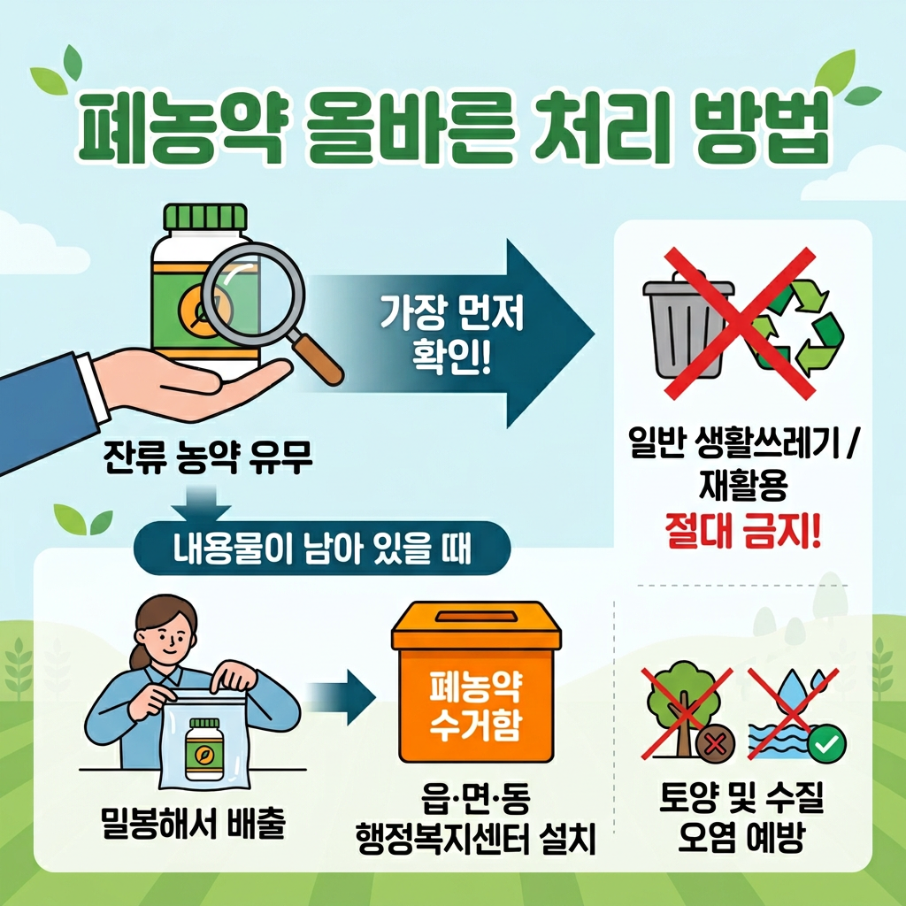 농사를 짓다 보면 사용하고 남은 농약이나 빈 농약용기를 어떻게 버려야 할지 고민되는 경우가 많아요. 특히 농약은 일반 쓰레기처럼 버리면 환경오염 위험이 있기 때문에 정확한 폐농약 처리방법을 알고 배출하는 것이 중요합니다.