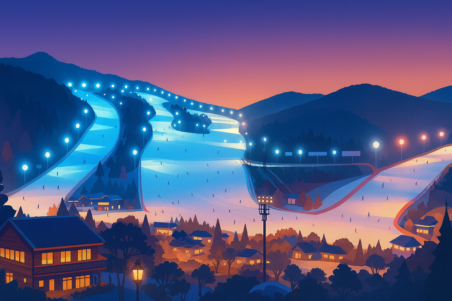 야간 스키도 인기가 많고, 깔끔하게 정돈된 슬로프 상태 덕분에 초보자들도 많이 방문하는 곳이에요.