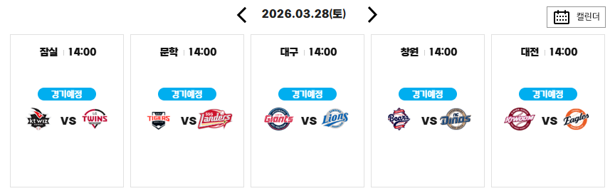 개막 첫 주말부터 다섯 구장에서 2연전이 펼쳐지기 때문에 야구 팬이라면 개막부터 흥미진진한 경기를 즐기게 될 거예요.